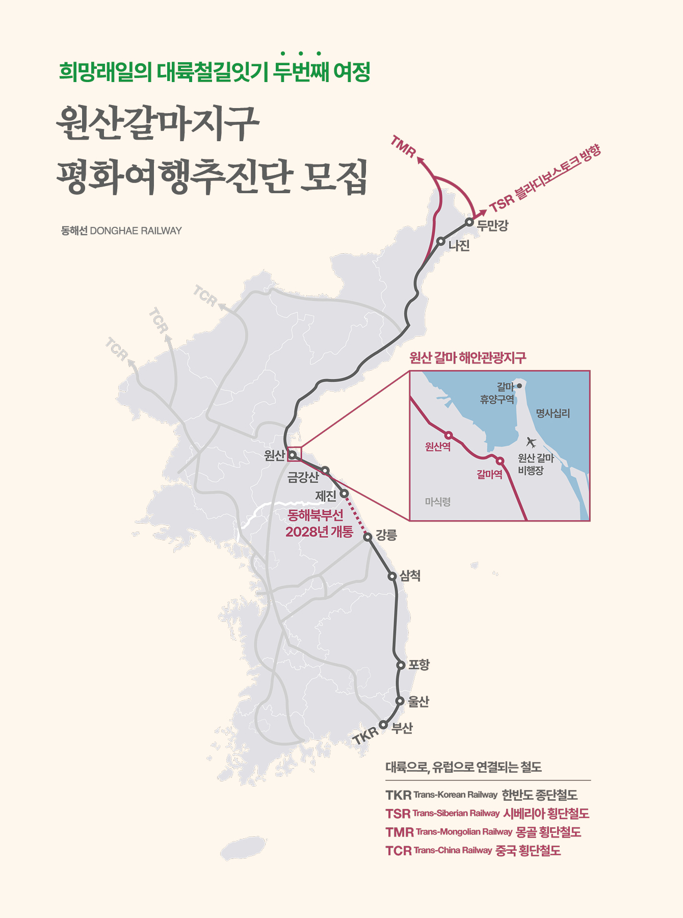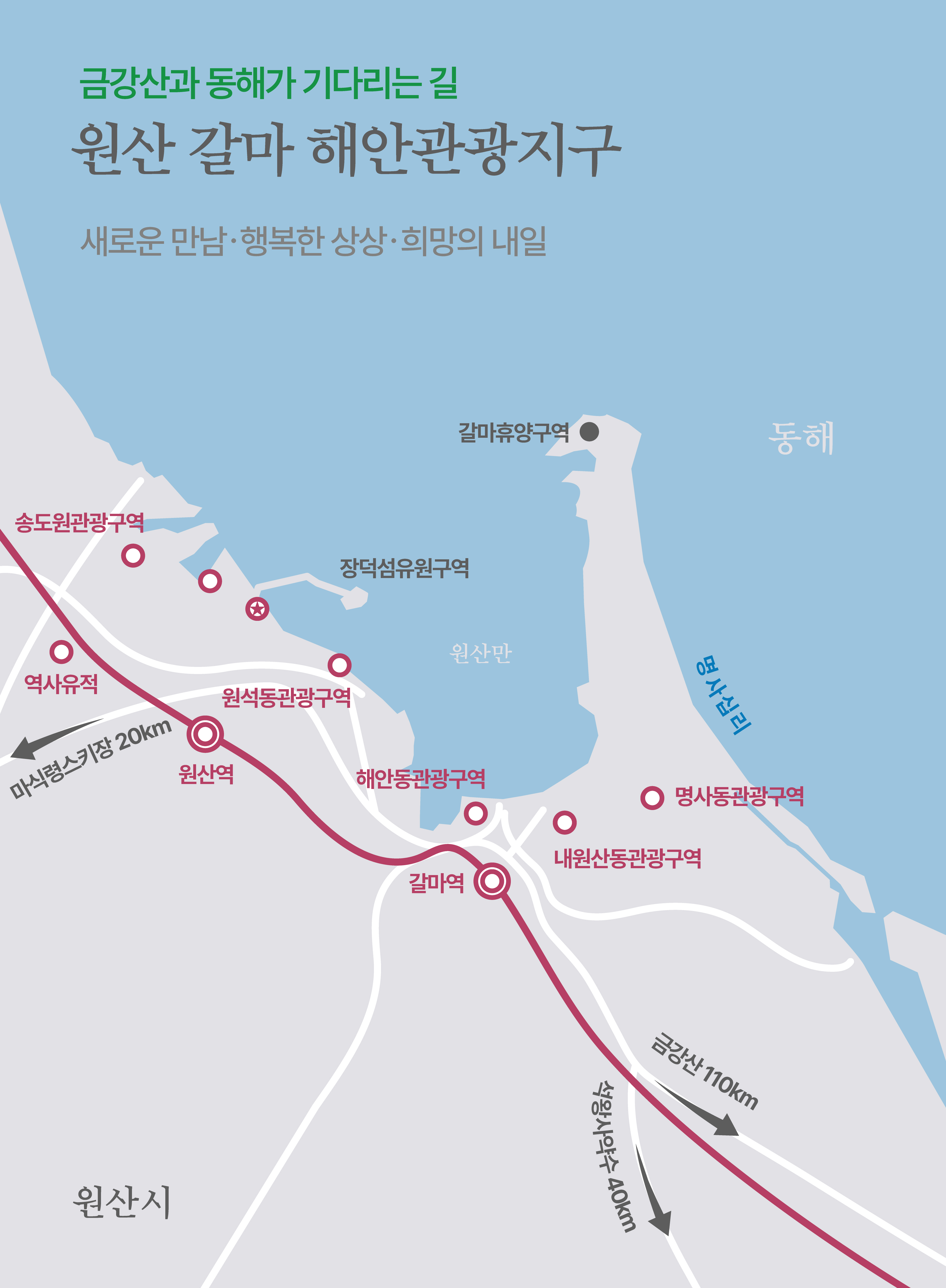 서울에서 출발한 기차가 동해를 따라 원산의 푸른 바다에 닿는 그날을 상상합니다. 그리고 그 상상이 현실이 되는 순간을 우리 모두의 손으로 함께 만들어가고자 합니다.